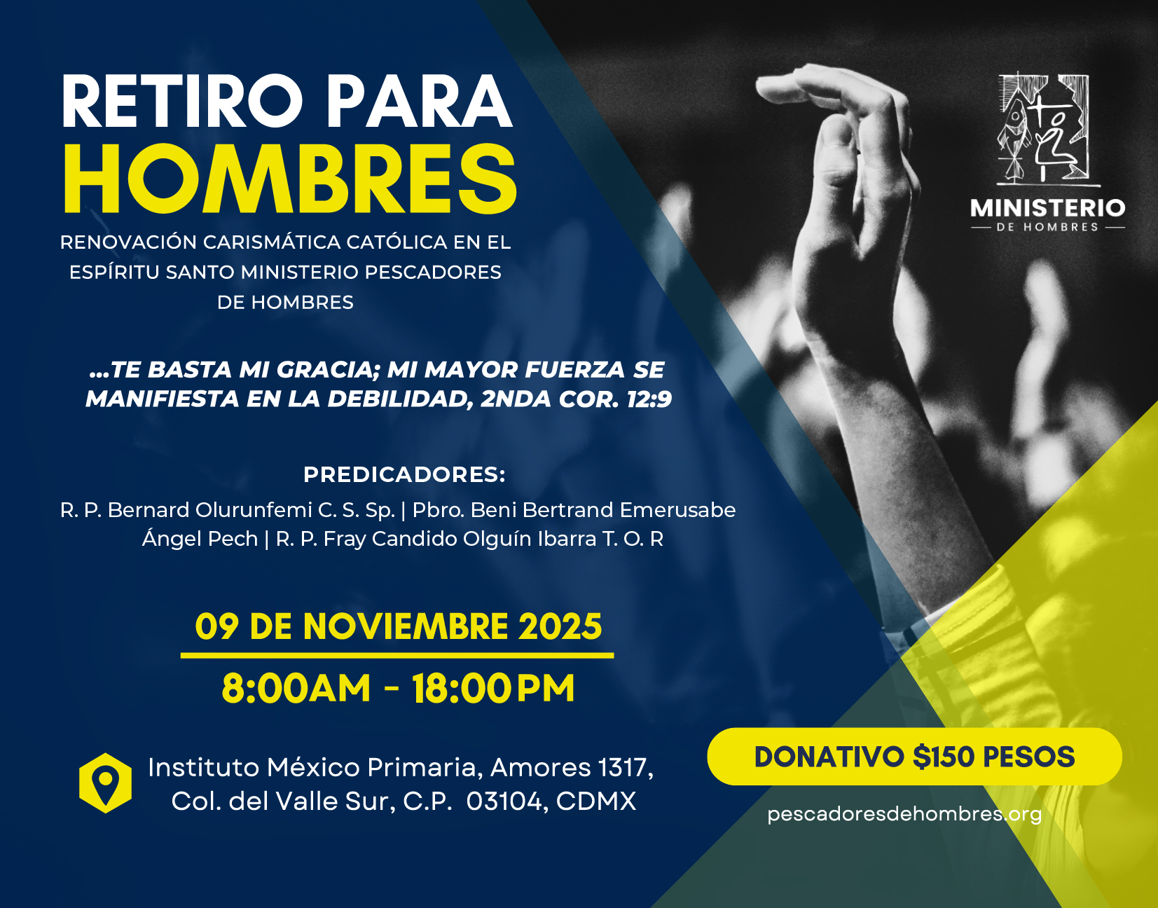 Porque los hombres también necesitamos espacios para encontrarnos con Dios, sanar el corazón, fortalecer la fe y renovar nuestro papel como esposos, padres, hijos y servidores. Este retiro es una oportunidad para detenernos, escuchar al Señor y dejar que transforme nuestra vida desde adentro.